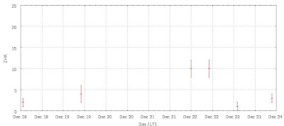 Pico Máximo pronosticado: 3 de Enero UT a las 12:50hrs UT, correspondiente a la longitud solar: 283.16grados.