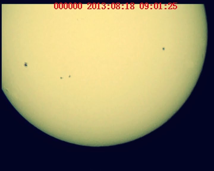 Les comparto una observacion solar en Luz Blanca , que realize el día 2013 08 18 UT de las 1540 a 1555 hrs UT. Lugar: Hermosillo, Sonora, Mexico.