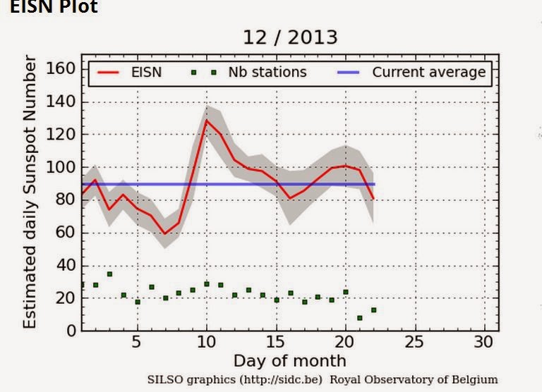 Grafica del Numero diario de Manchas Solares del 1 al 22 Dic. 2013. Observatorio Real de Belgica.