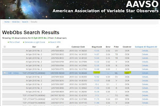 Reportes de Fotometrias de la 2a.Nova Brillante en Ofiuco 2015. AAVSO.